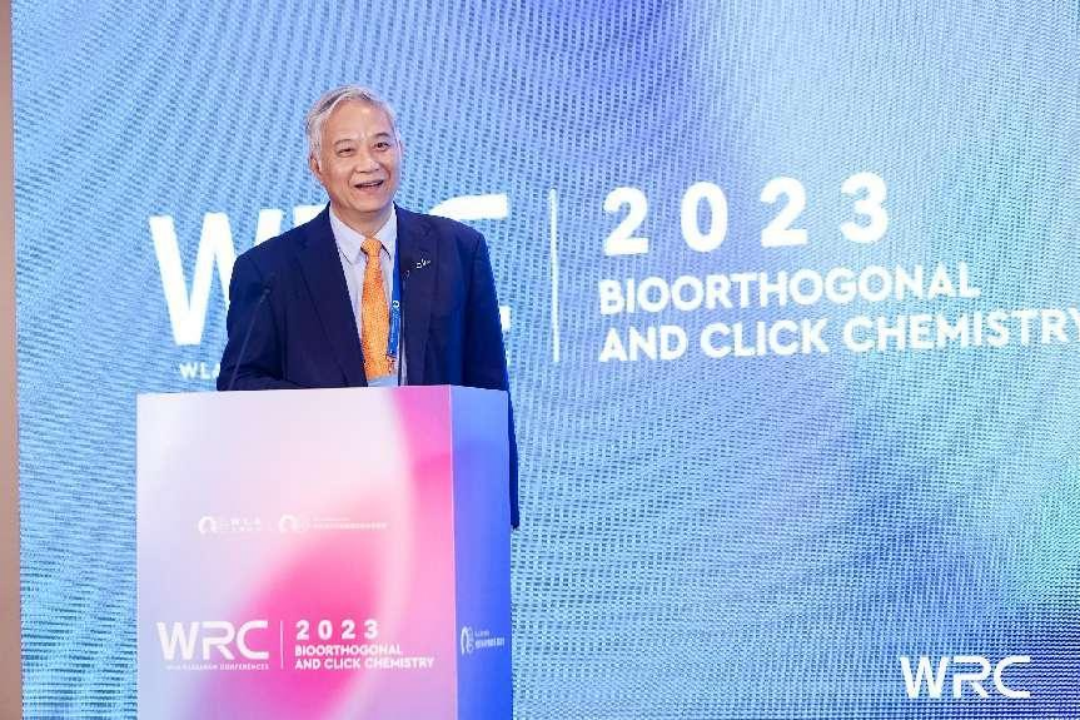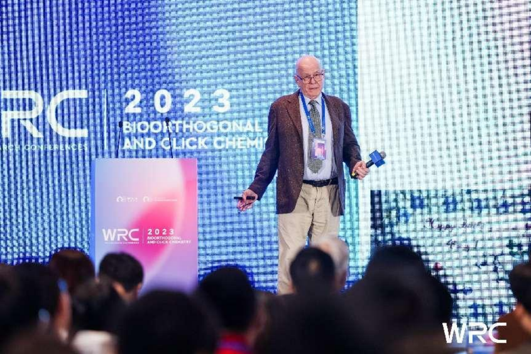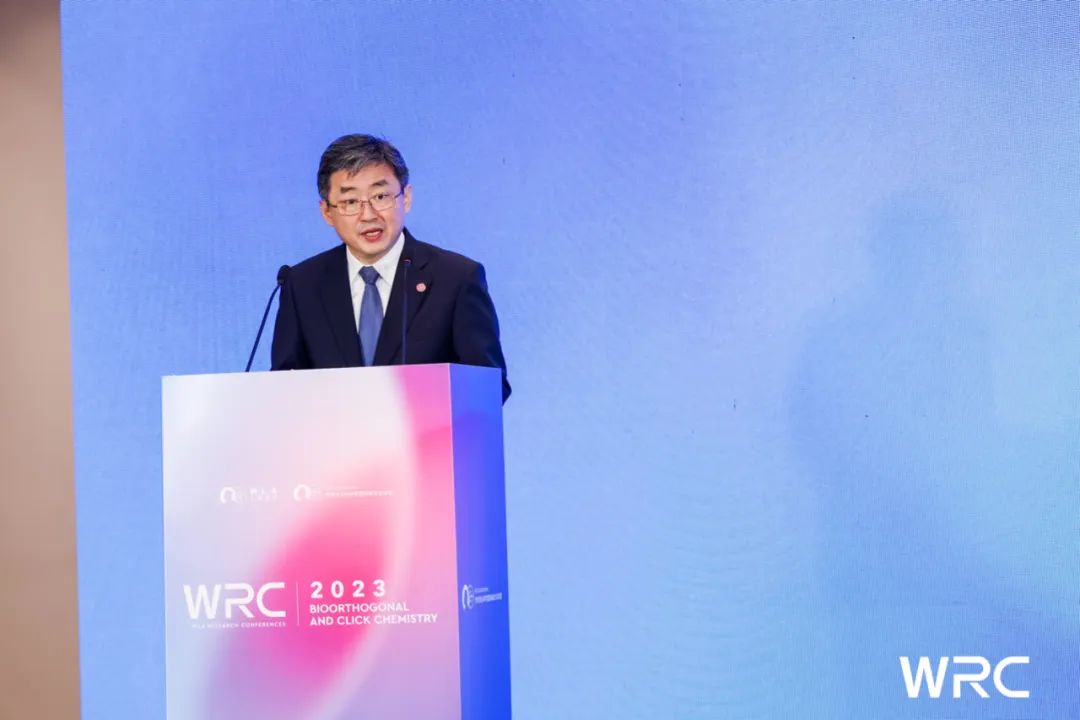 2023年10月15日上午,WRC2023生物正交與點擊化學(xué)學(xué)術(shù)會議在上海張江雅樂軒盛大開幕。本次會議由2022&2001年諾貝爾化學(xué)獎得主卡爾·巴里·夏普利斯(K. Barry Sharpless)、上海交通大學(xué)校長、中國科學(xué)院院士丁奎嶺擔任會議主席并為會議致辭。2013年諾貝爾化學(xué)獎得主邁克爾·萊維特(Michael Levitt)代表主辦方作開幕致辭。