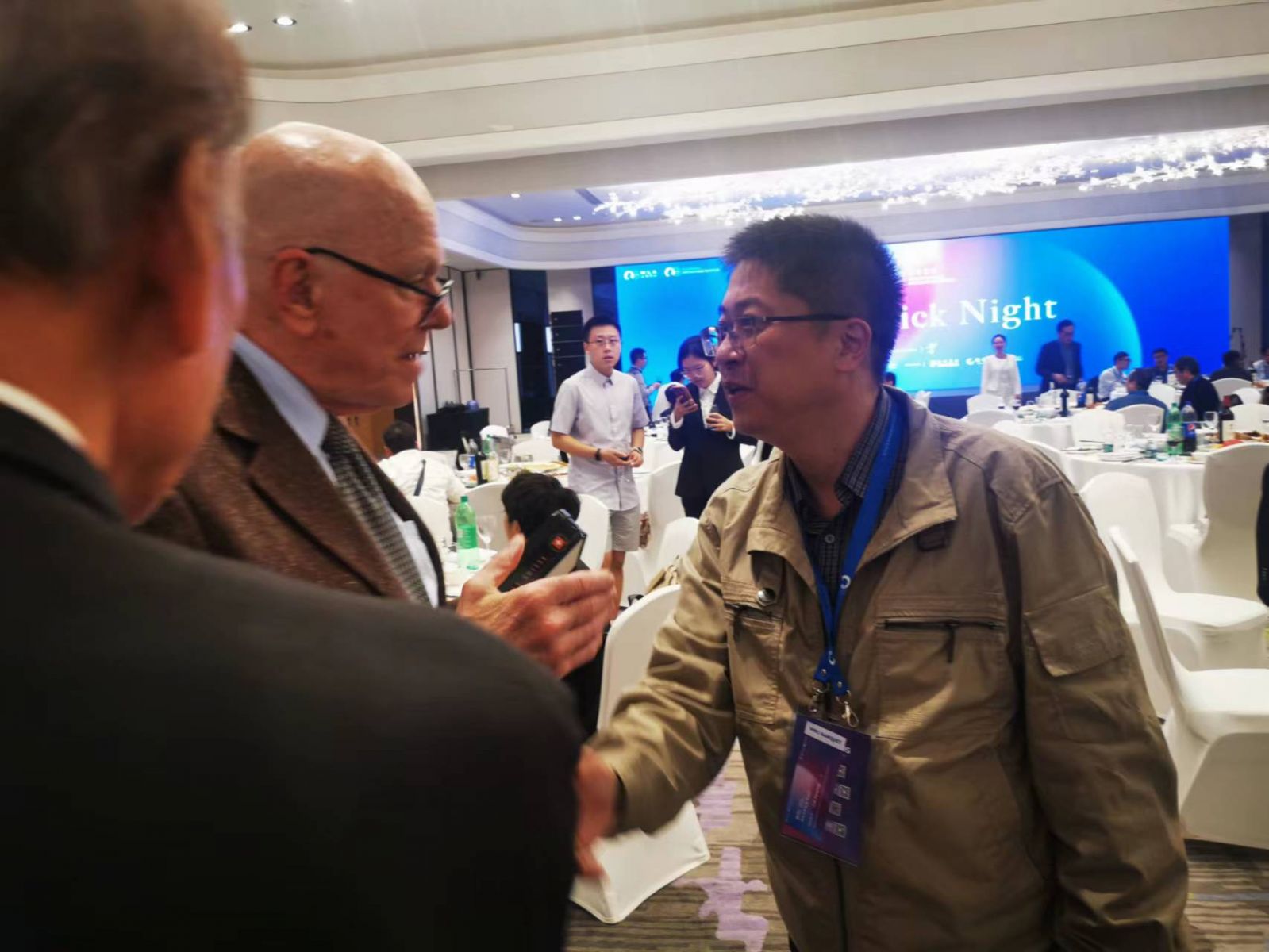 Click Night 晚宴上Barry Sharpless和蔡凡平討論我們工廠生產(chǎn)的代號為“鹽”的一個點擊化學(xué)關(guān)鍵物料的process chemistry,給予高度評價 。